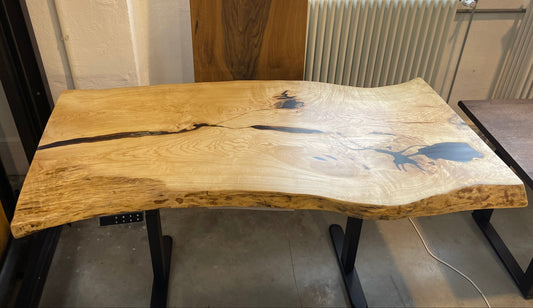Olivesche Schreibtisch mit wilder Baumkante ....handgefertigt