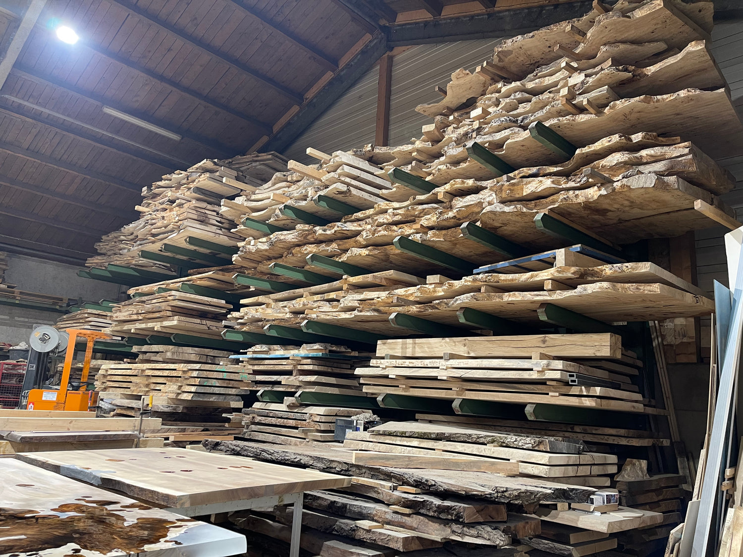 Der handwerkliche Bau eines Naturkantentisches erfordert viel Sorgfalt, Präzision und Respekt vor dem natürlichen Rohstoff Holz. Zu Beginn wird das Holz sorgfältig ausgewählt. Hierbei kommen ausschließlich Massivholzbohlen aus heimischen Hölzern zum Einsatz. Wir verwenden keinerlei Tropenholz. Die Rohplatten sind sorgfältig getrocknet und spannungsfrei.