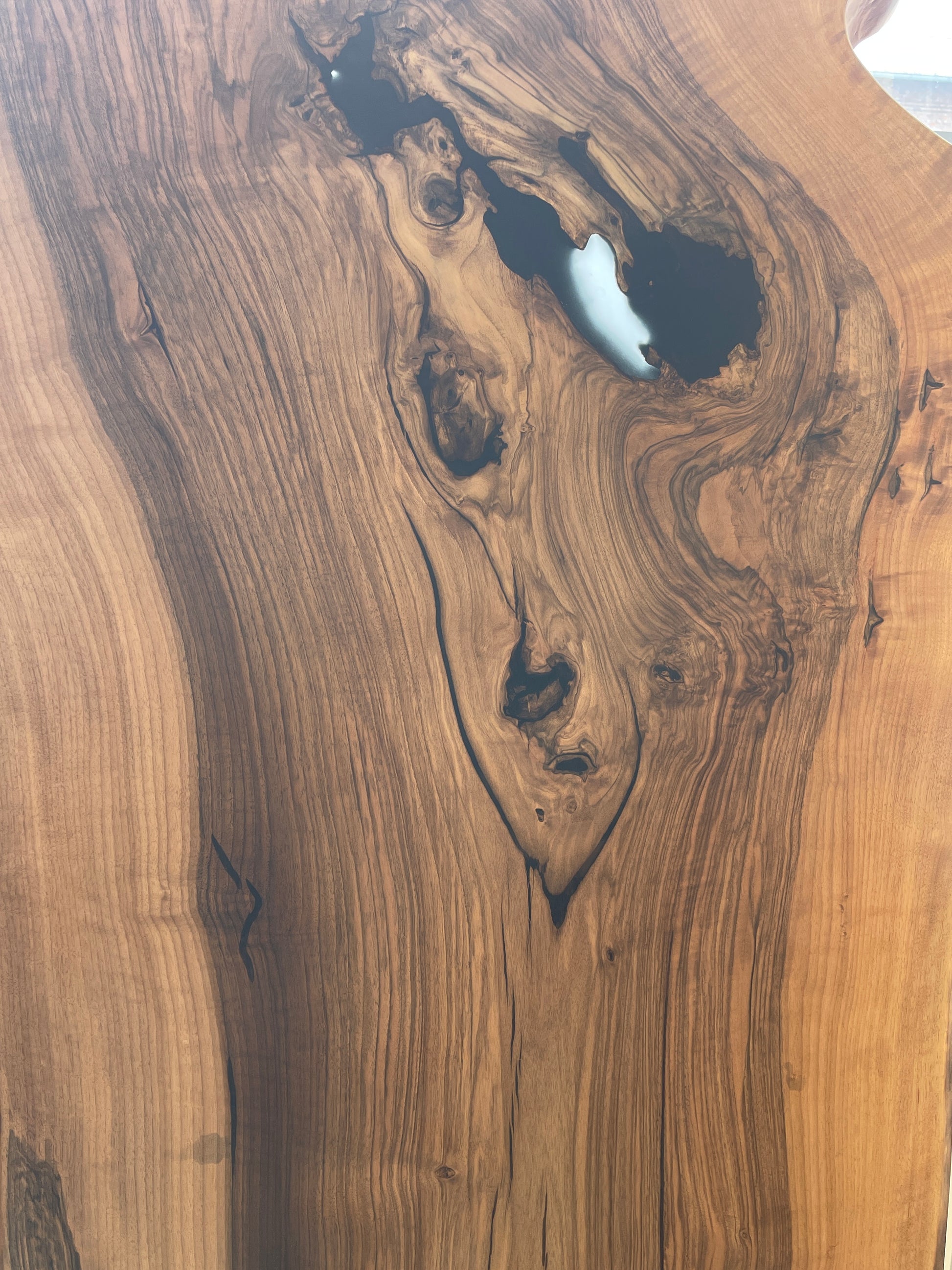 Walnuss Tischplatte individuell mit viel Wurzelholz